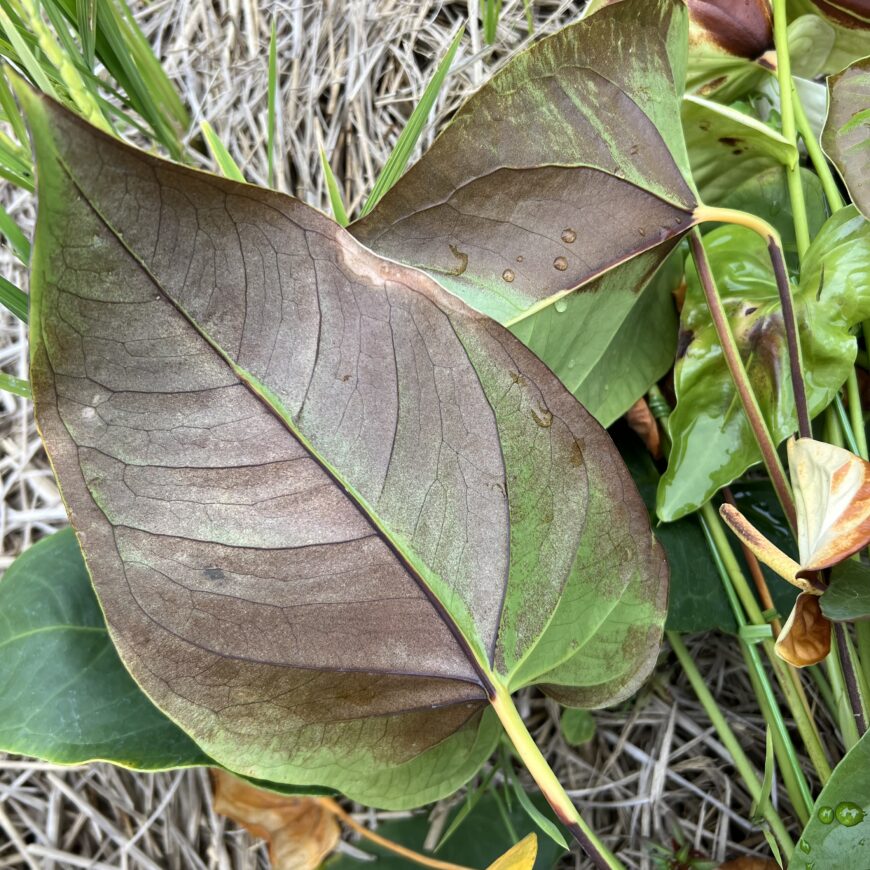 写真のような葉を見るたびに、「あー、株が寒さに耐えられていないなー」と感じます。