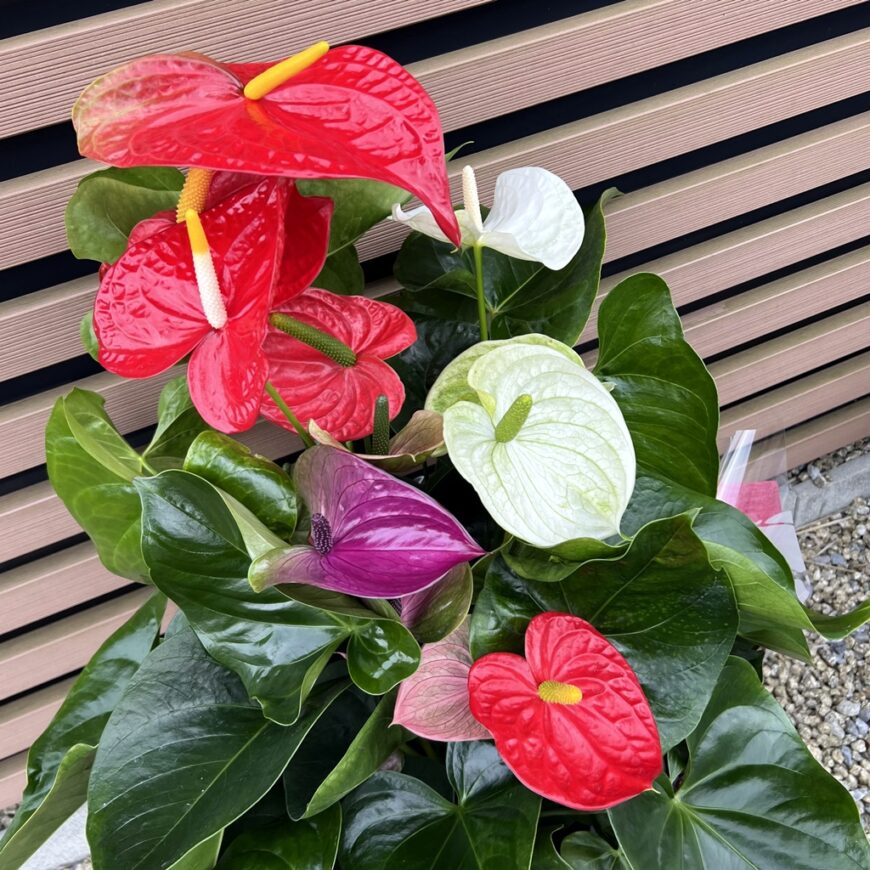 過去の動画でもお伝えしていますが、この時期のアンスリウムは花がとても綺麗です。