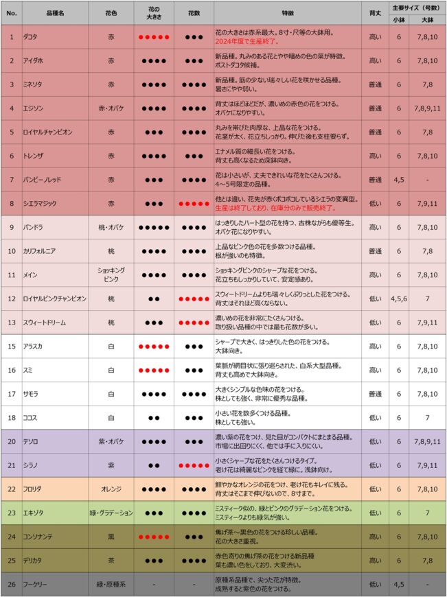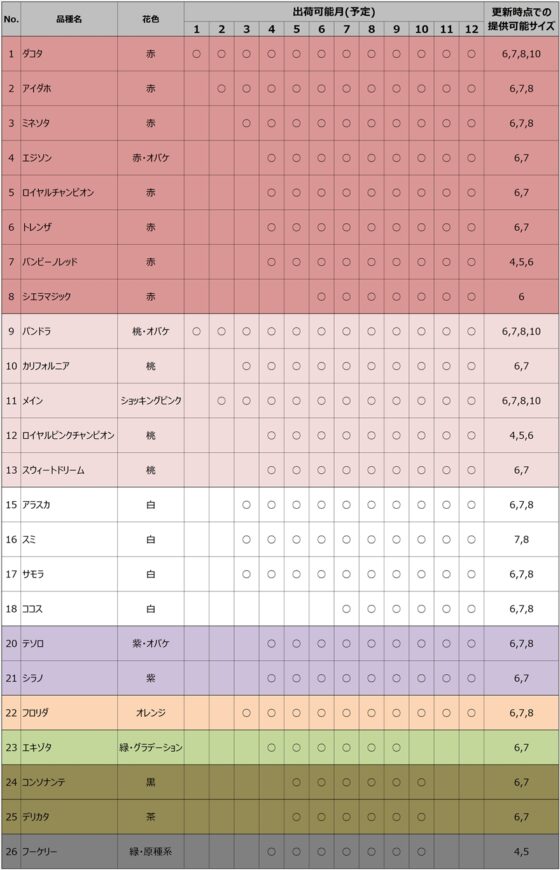 2024年3月23日時点での品種在庫リストです。