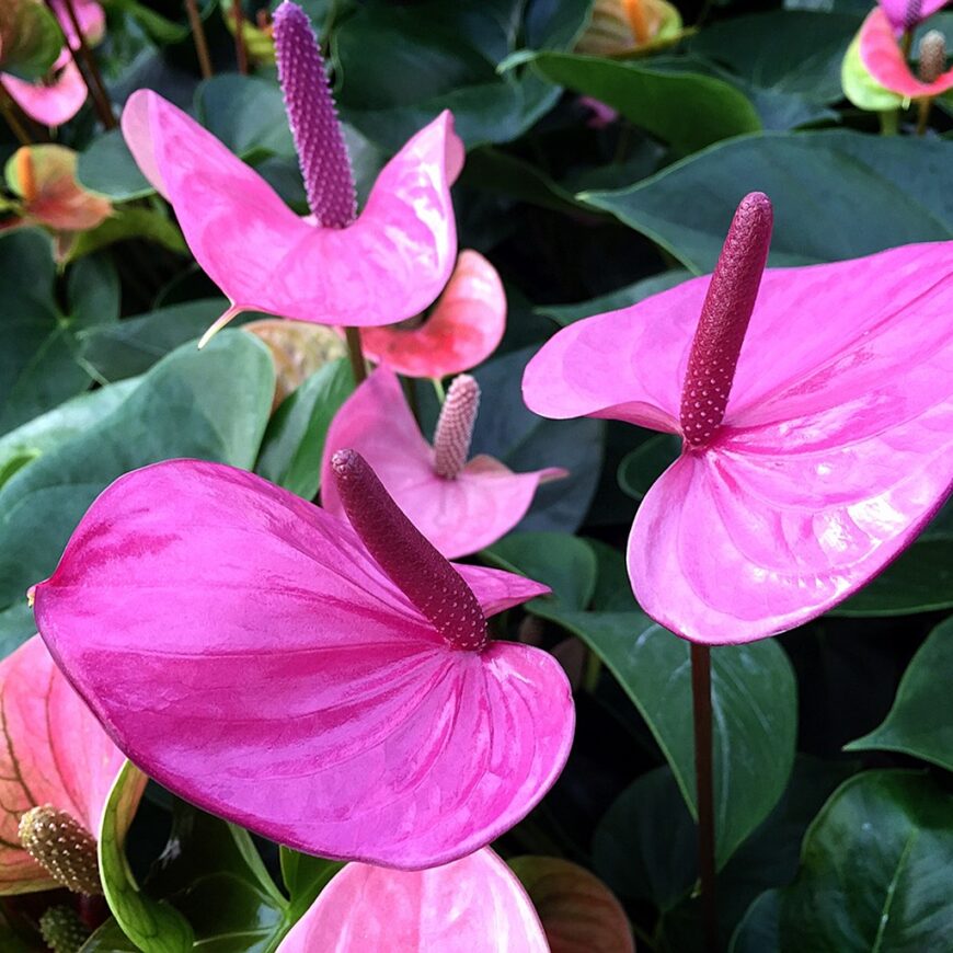 アンスリウムの紫系品種には割と濃い紫のものが多く、薄めの紫は珍しいです。