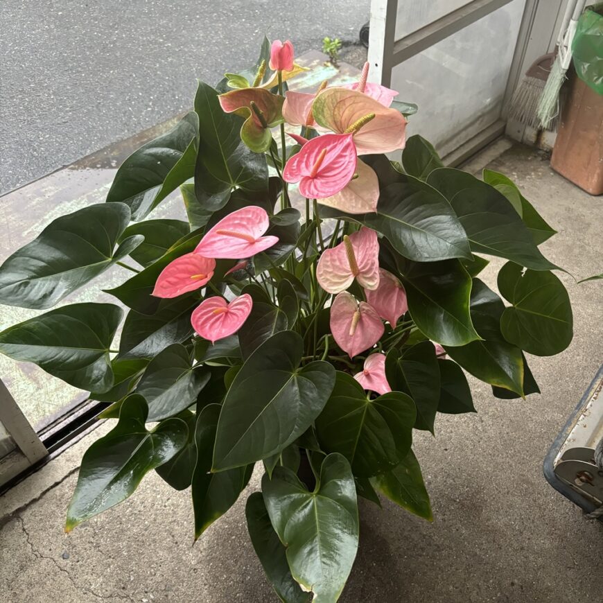 アンスリウムに限らず、1鉢に複数の株が使われた寄せ植え商品は世にたくさんあります。