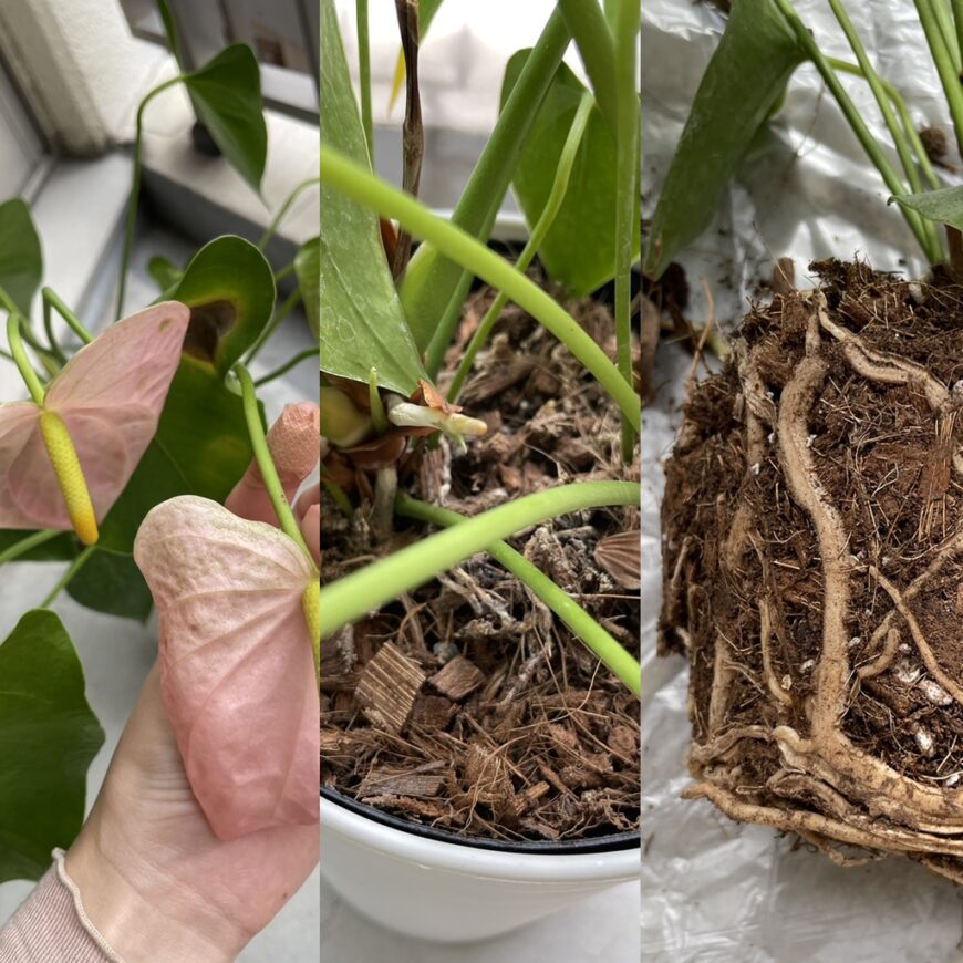 もしアンスリウムの土が写真のようだった場合は、植替えをされることをお勧めします。
