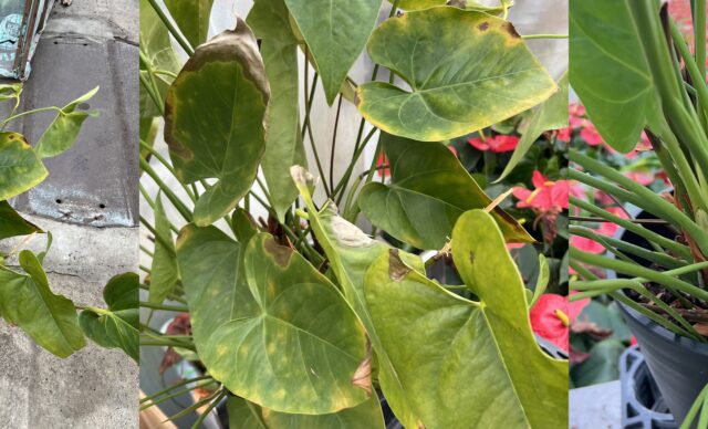 夏を頑張って生き抜いたアンスリウムは、実はけっこう疲れています。