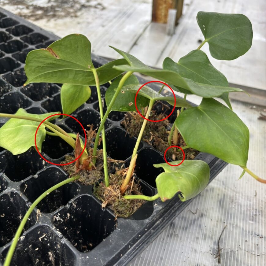 アンスリウムは「ファイトマー」と呼ばれる節が積み重なって伸びていきます。
