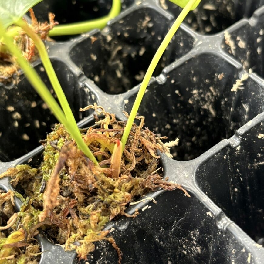 アンスリウムの生育初期にて、株を大きくするのに水苔はとても相性が良いです。