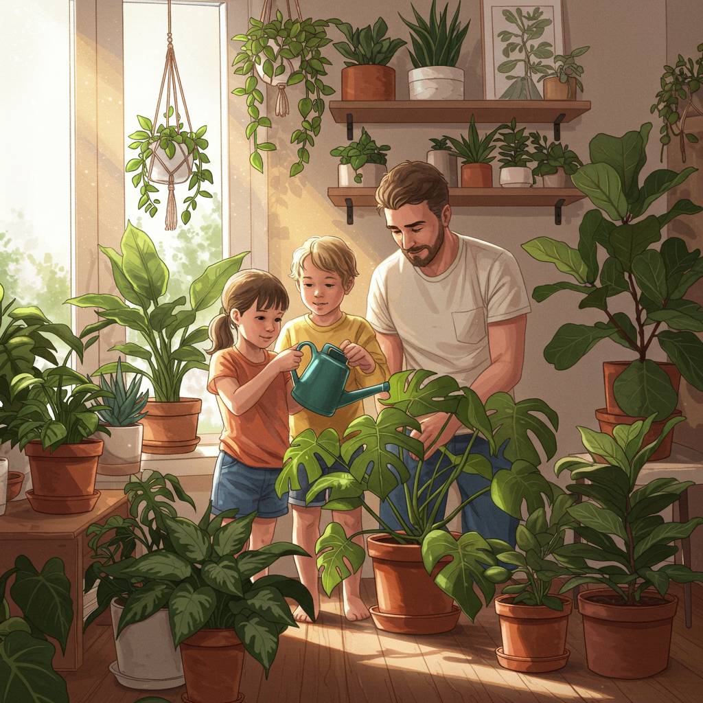 週末には子どもたちが順番に水やりを担当し、新しい葉が出てくると家族みんなで喜びます。