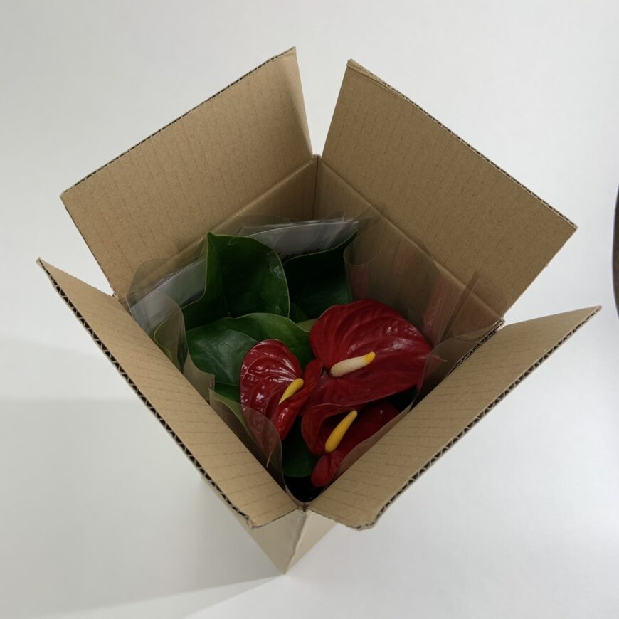 箱の中で花が擦れたり商品が動かないように緩衝材を入れたり、